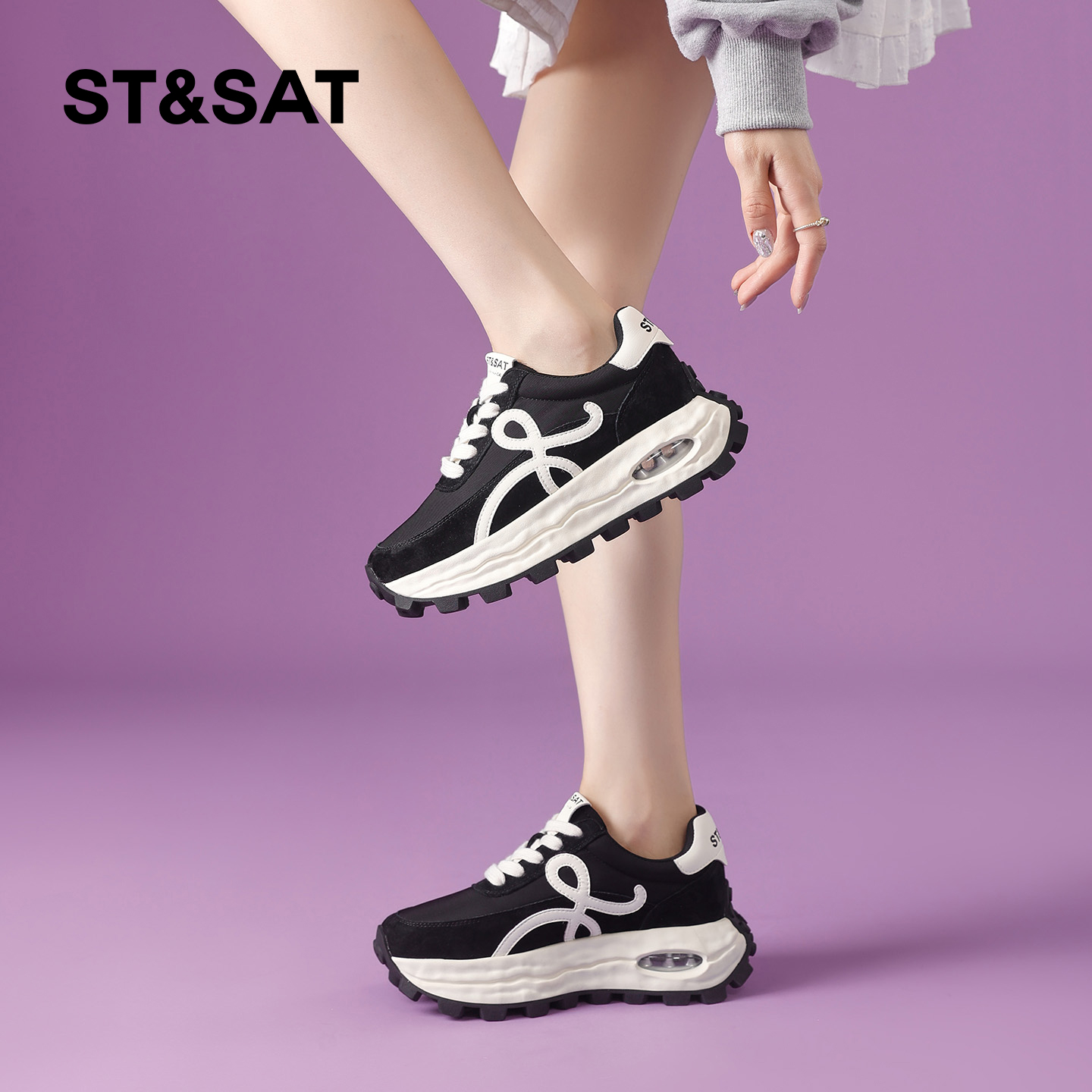 厚底增高休闲鞋 革面老爹鞋 女鞋 轻便透气软底运动鞋 秋季 特步星晴