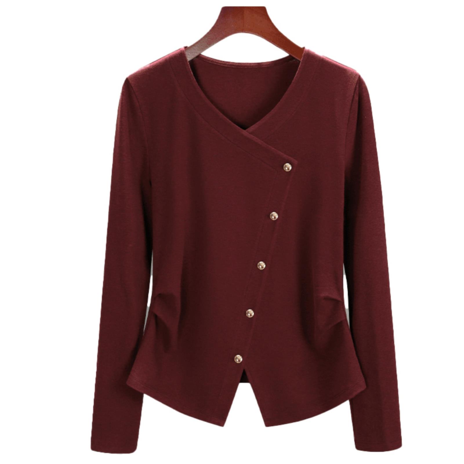 辣妹修身 打底衫 显瘦上衣 T恤女春秋内搭短款 设计感小众正肩V领长袖