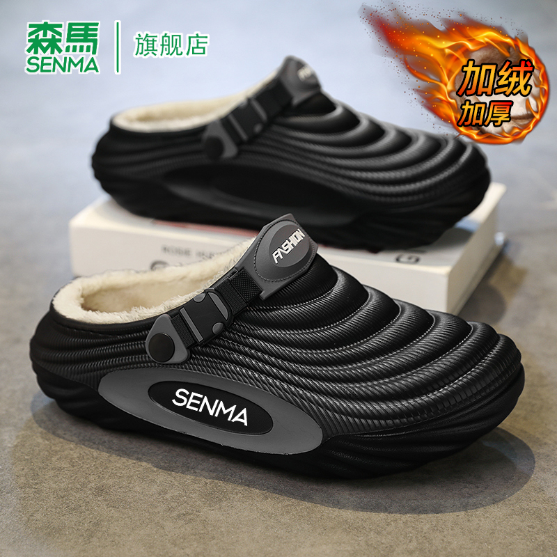 男士 外穿加绒保暖包头棉鞋 棉拖鞋 冬季 办公室软底防滑 男款 超火拖鞋