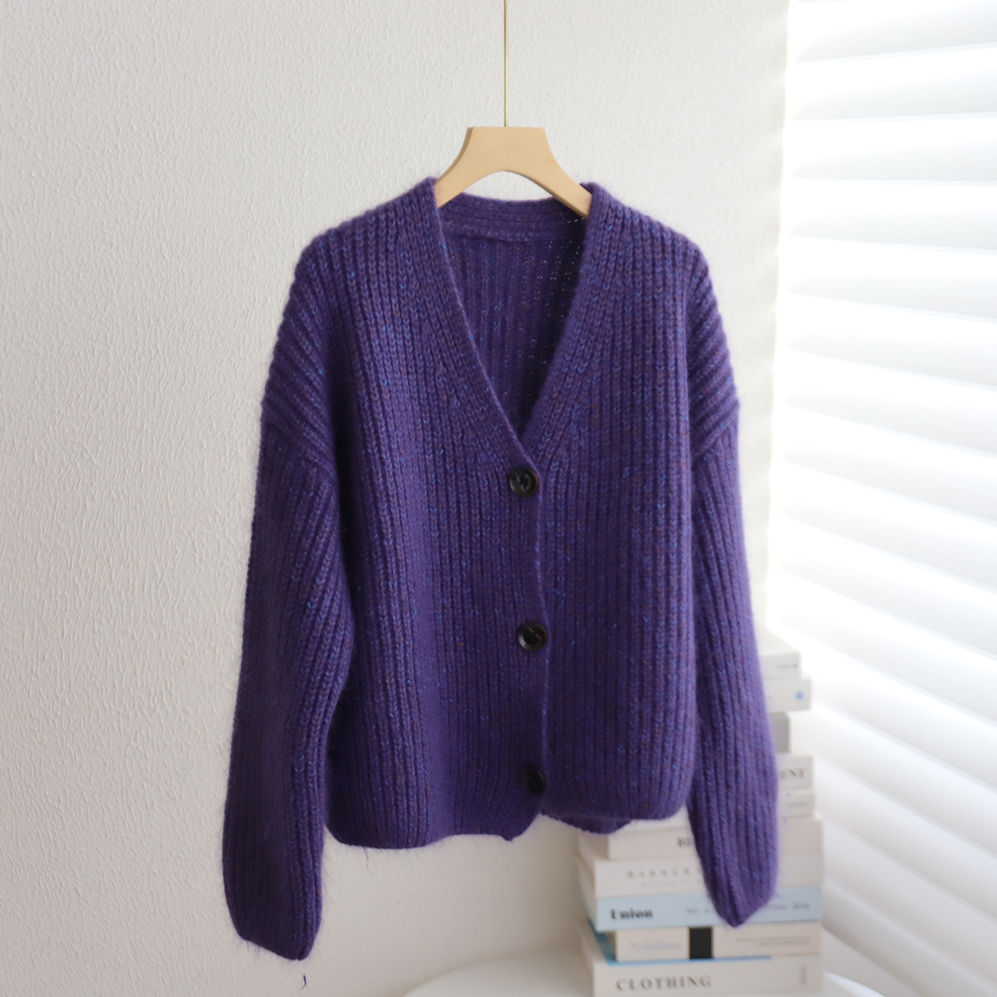 上衣潮 毛绒感开衫 温柔风V领针织毛衣外套女秋冬新款 宽松显瘦长袖