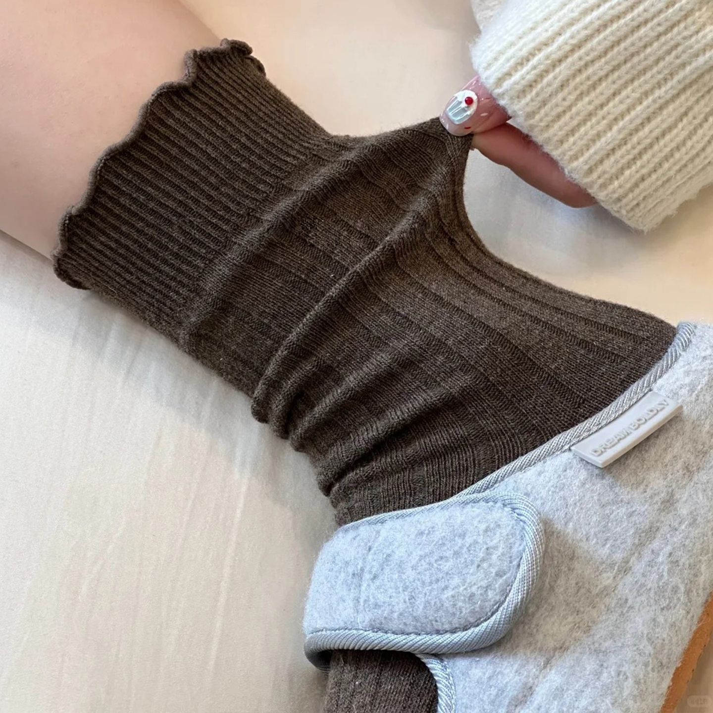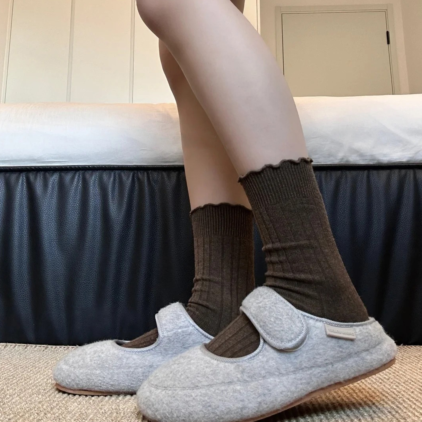 搭配小皮鞋 中筒袜秋冬季 白色防臭月子无骨 纯棉春秋季 堆堆袜子女款