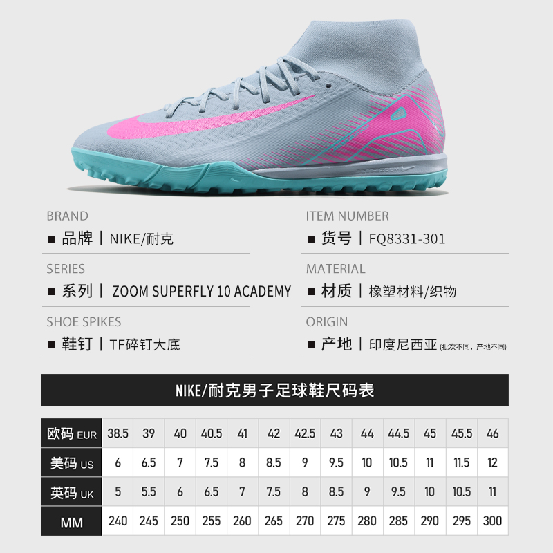 Nike耐克足球鞋 301 男刺客VAPOR16高帮女中端TF碎钉人草FQ8331