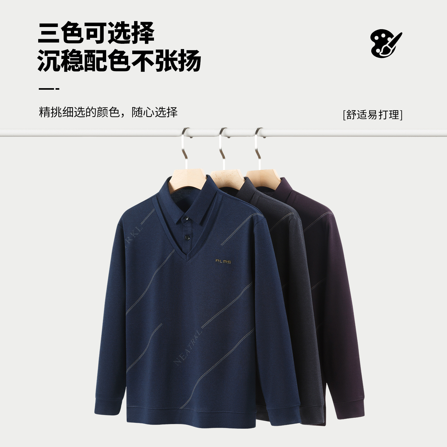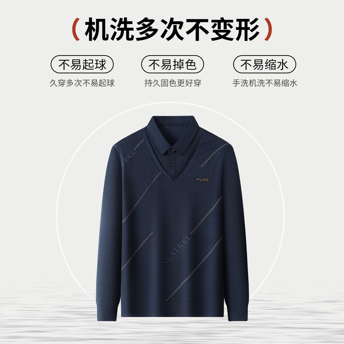 宽松印花打底衫 爸爸秋装 中年男士 t恤新款 中老年人上衣 假两件长袖