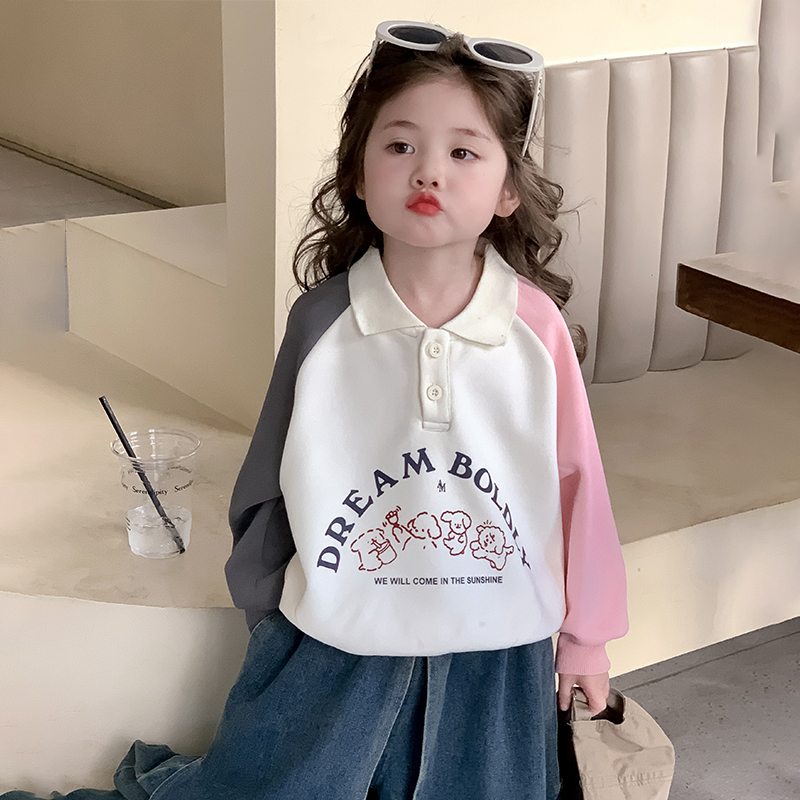 时尚 宽松宝宝打底衫 女孩上衣韩版 春秋女童polo领卫衣儿童春装