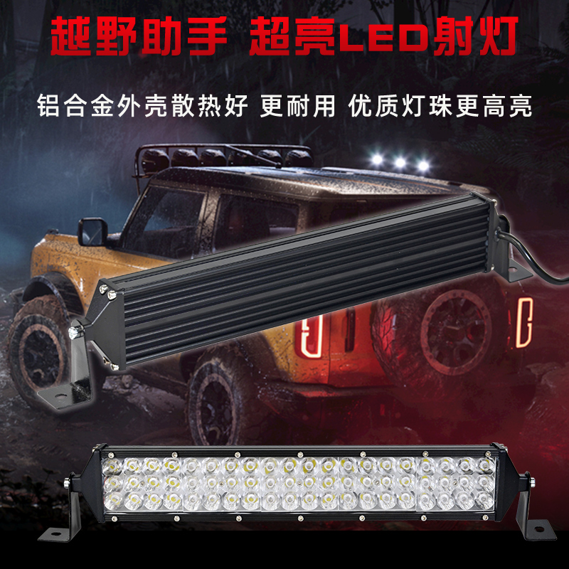 汽车LED三排透镜长条灯中网射灯12v越野车顶24v货车前杠改装 超亮
