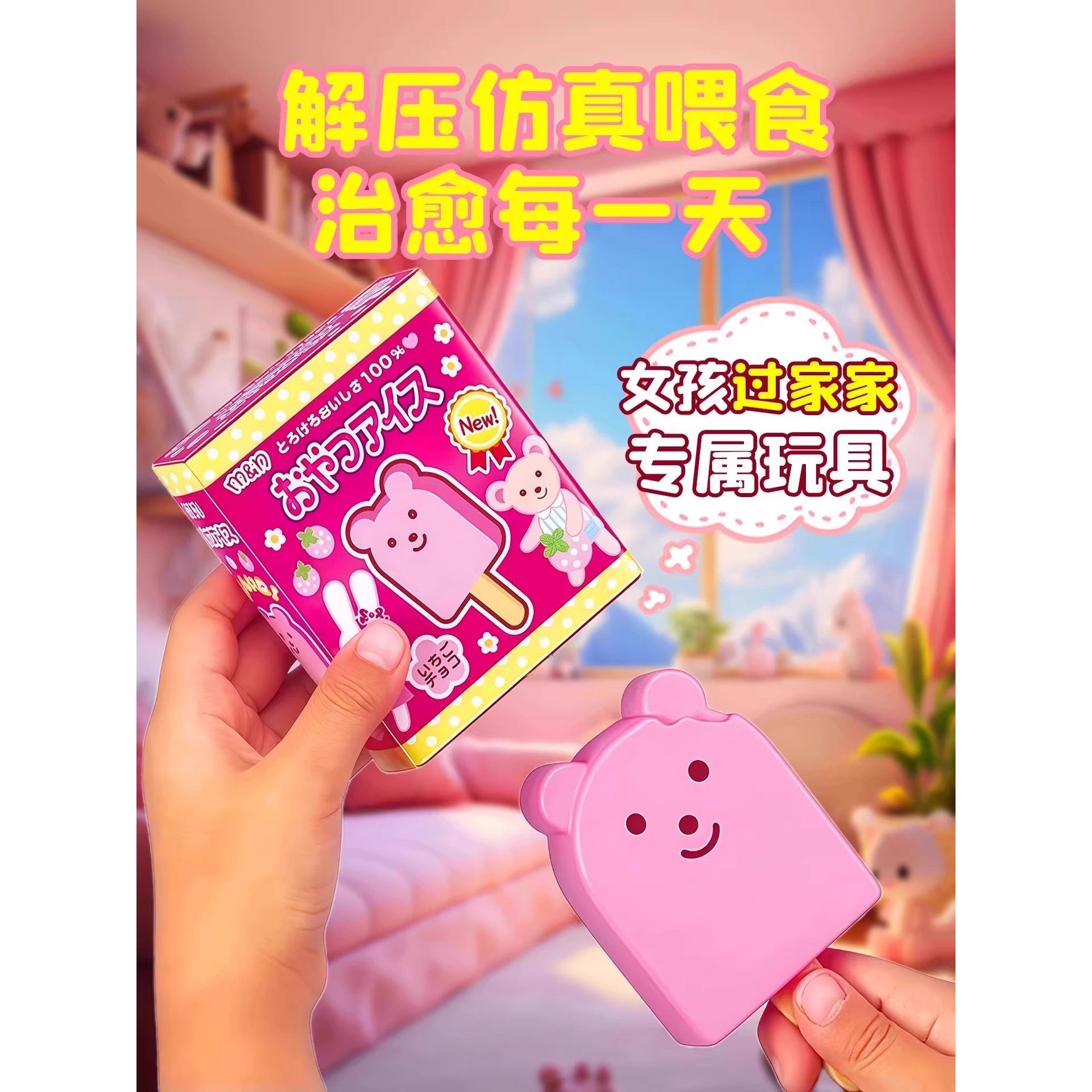 小红书同款 可爱小熊冰棍解压玩具女孩童仿真喂食减压布丁果冻拉面