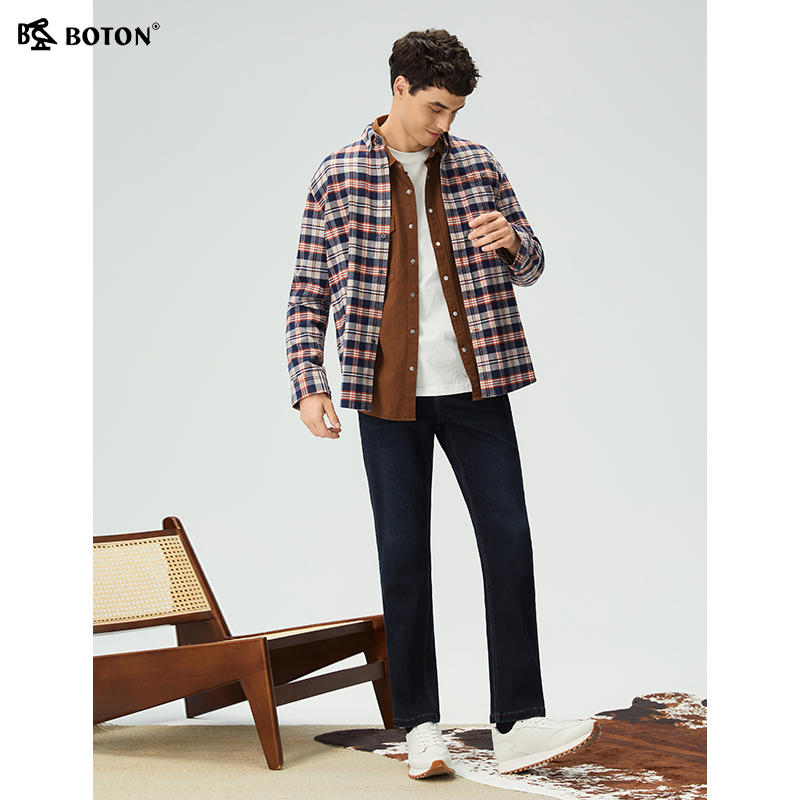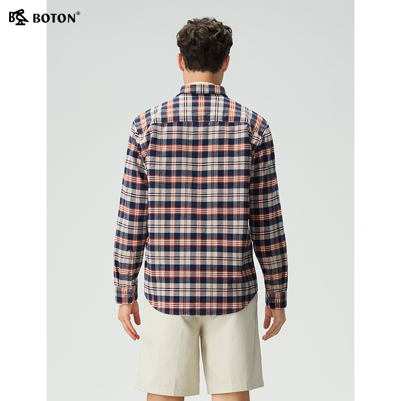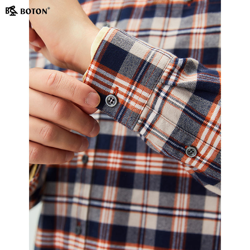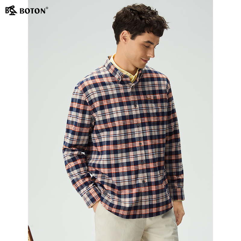 翻领修身 中厚磨毛格子长袖 衬衫 波顿2025秋季 长袖 男士 衬衣男款 新款