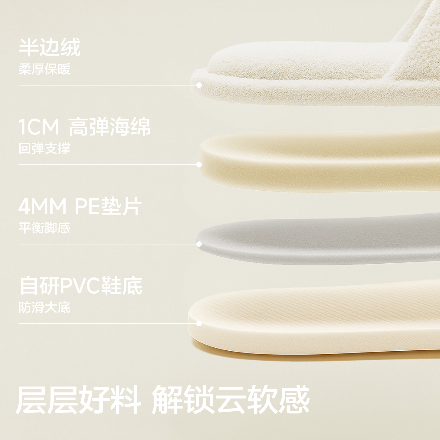 拖鞋 三利半边绒棉拖鞋 居家室内防滑保暖男士 秋冬季 毛绒女2025新款