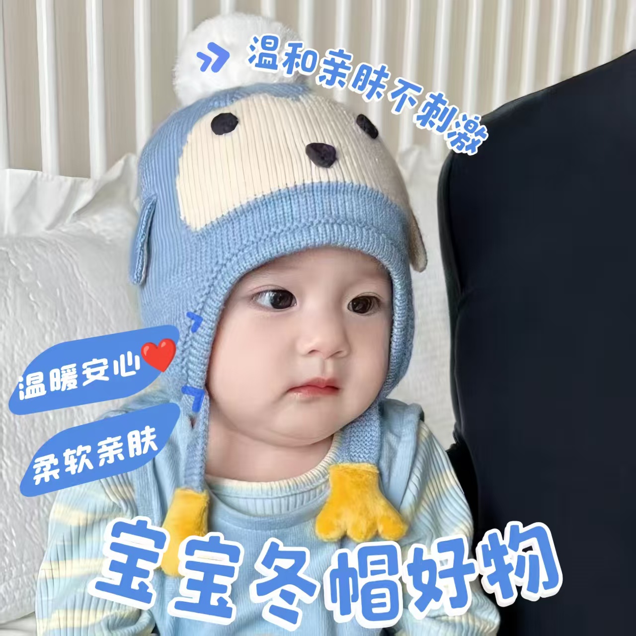 儿童帽子秋冬季 男女童户外骑行防风面罩护耳套头帽宝宝围巾一体帽