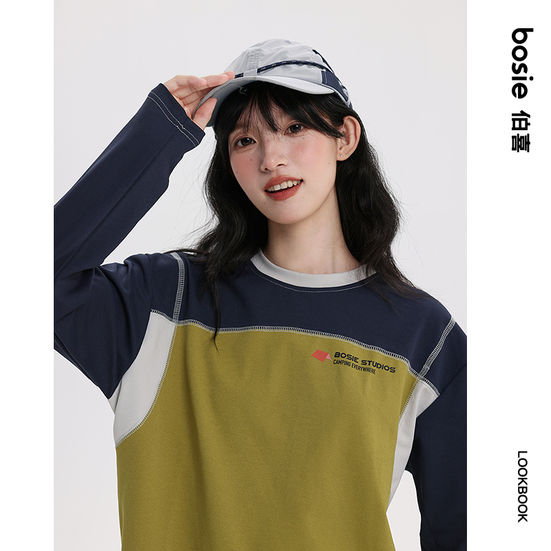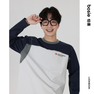 T恤男情侣运动打底衫 拼接骑行长袖 外套潮 新款 bosie伯喜2025年秋季