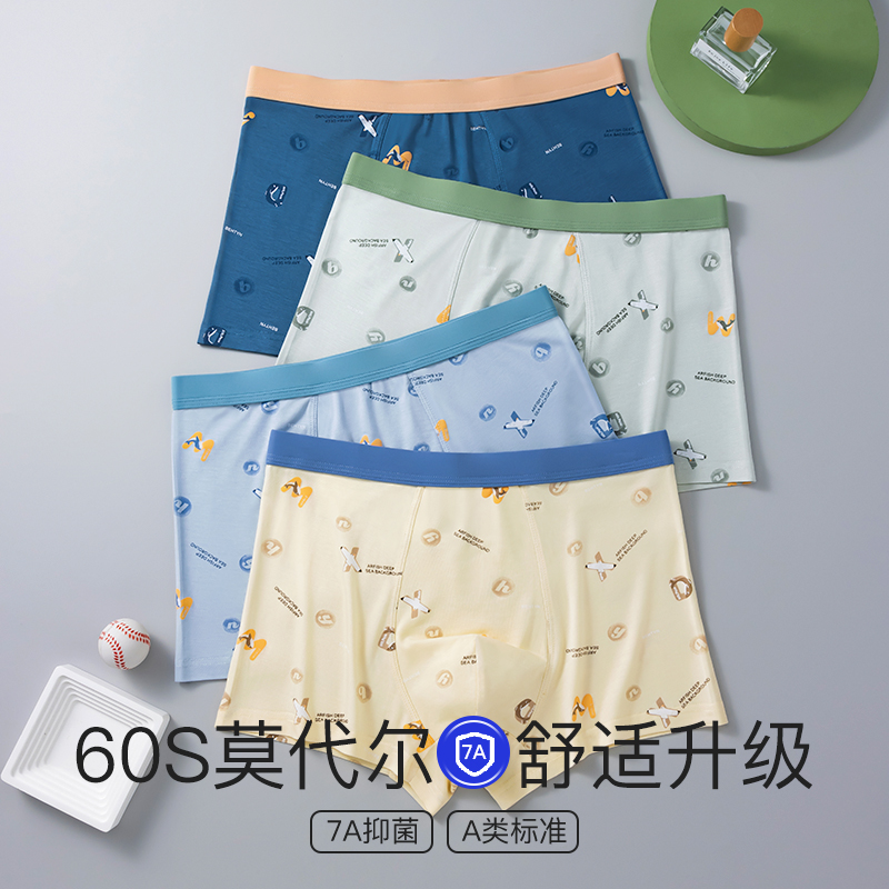 初高中生发育期四角裤 男生莫代尔抗菌青少年平角短裤 内裤 猫人男士