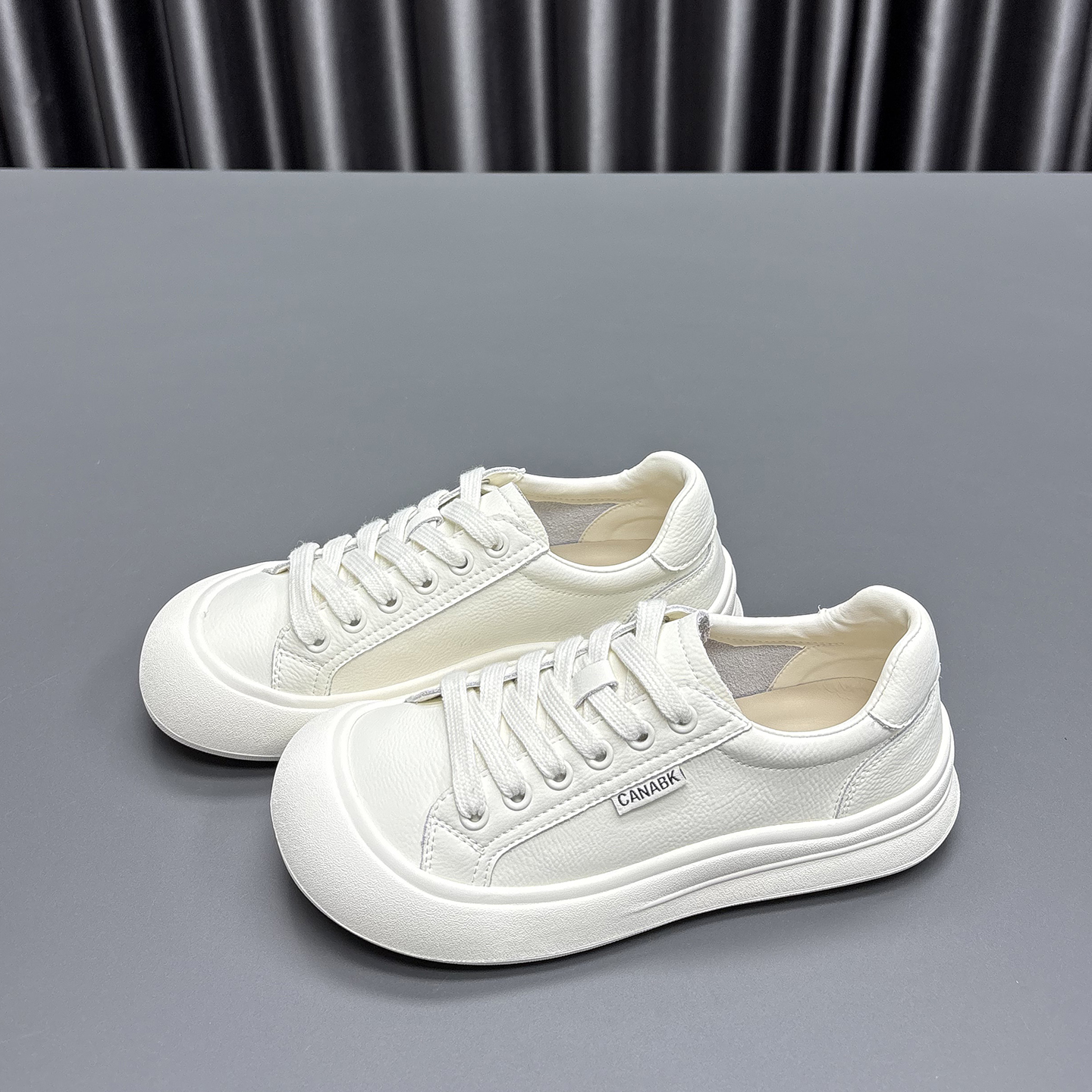 百搭丑萌大头系带平底轻便运动休闲板鞋 新款 女2025秋季 厚底小白鞋