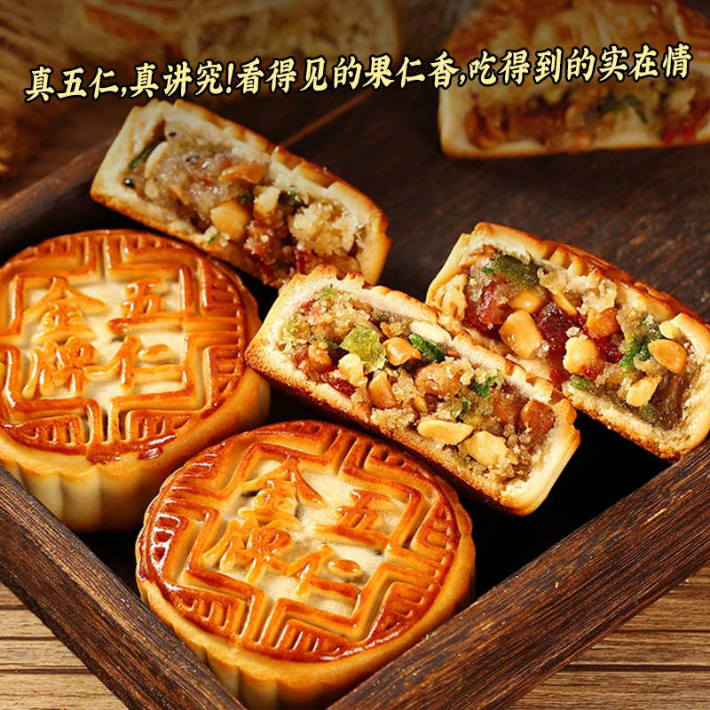 点心批发 糕点独立包装 五仁月饼广式 青红丝传统口味皮薄陷足老式