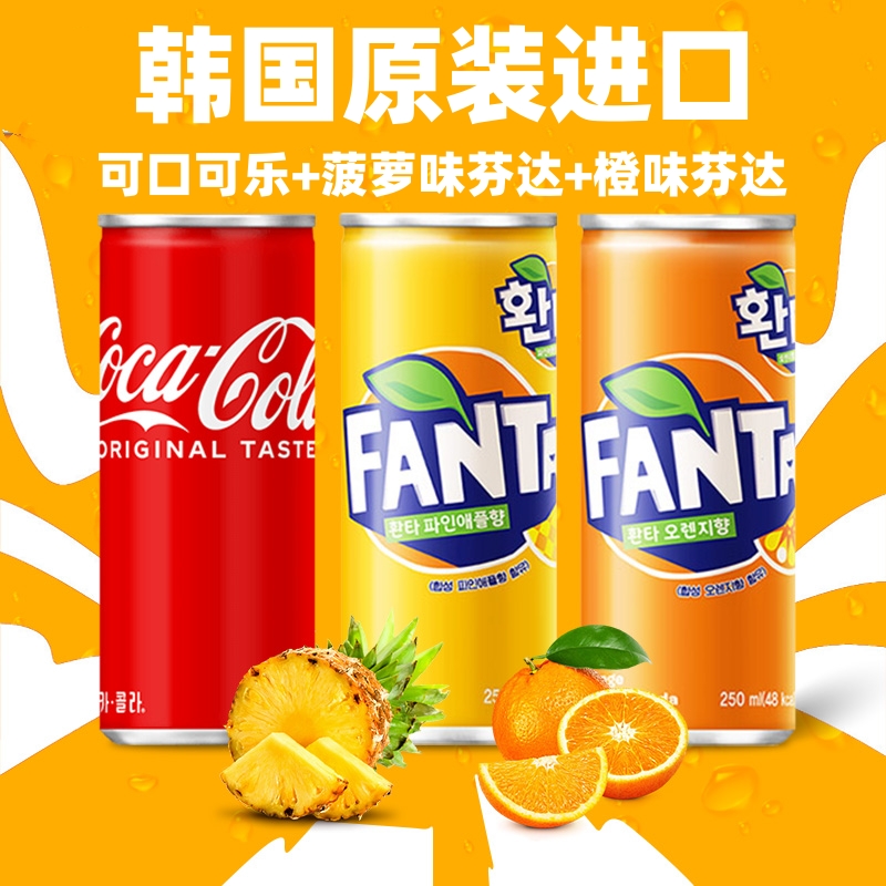 韩国进口可口可乐芬达橙味菠萝味芬达碳酸饮料汽水整箱装 自营