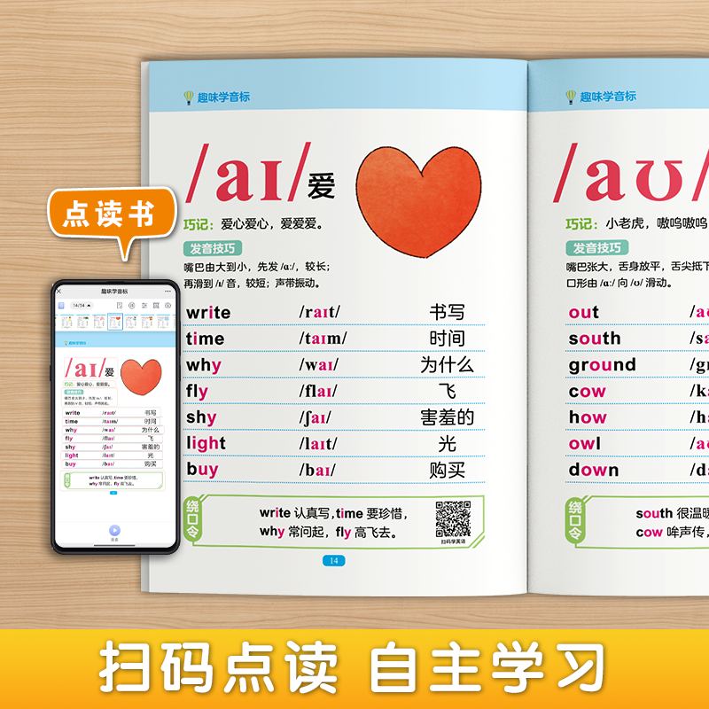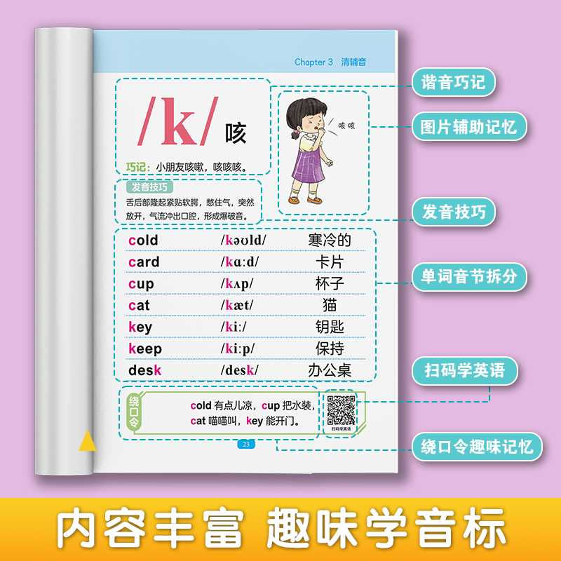 趣味学英语音标速记忆国际音标小学生通用英语零基础启蒙入门教材教程拼读学习三年级小学速记单词练习本自然拼读发音口诀巧记RJ