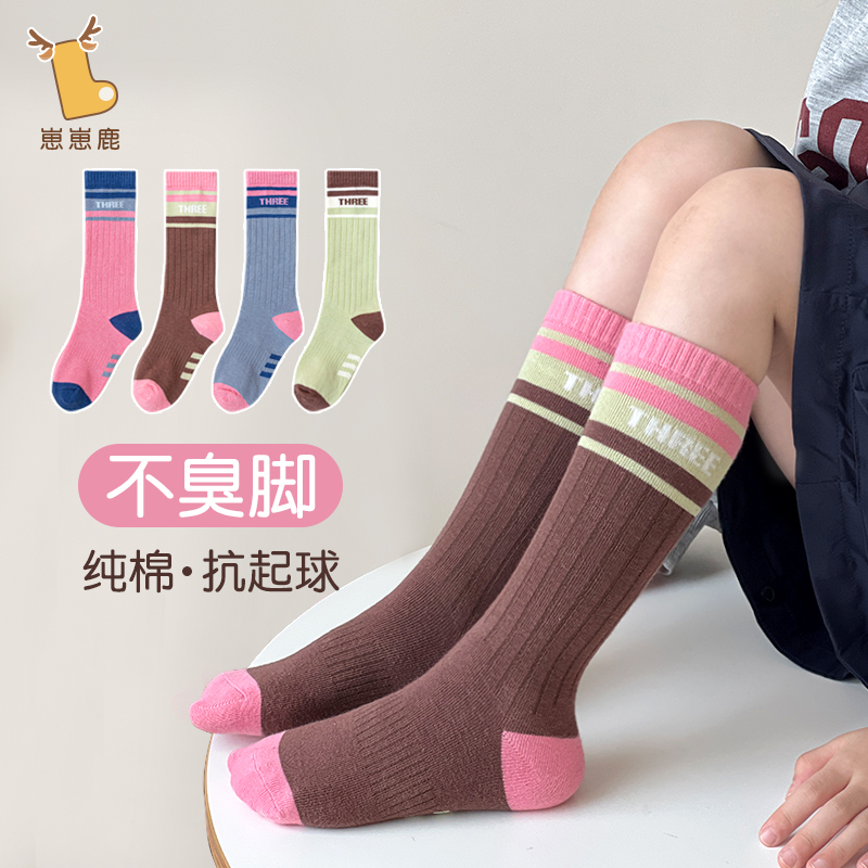 纯棉运动女童长筒袜子春秋季 儿童大女孩潮流撞色中大童秋冬高筒袜