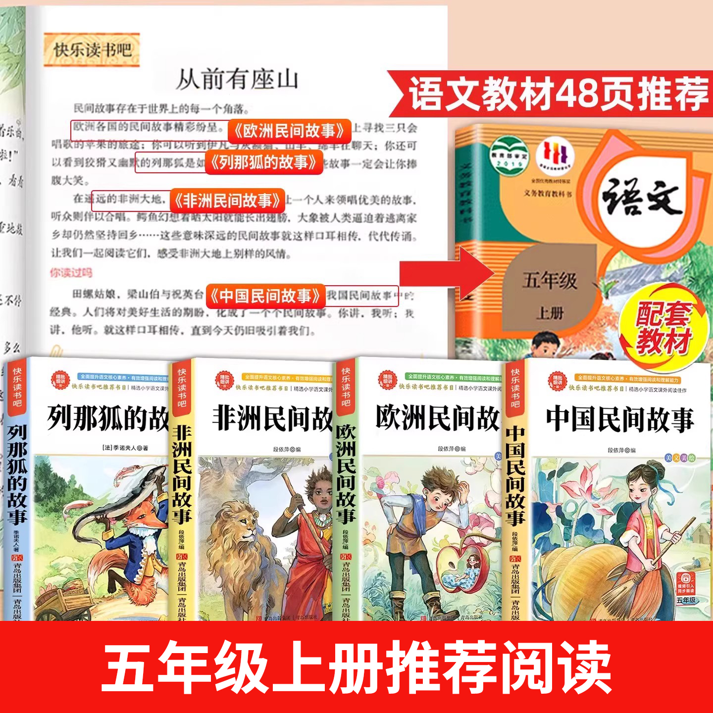 故事快乐读书吧五上阅读书籍配套人教版 课外书田螺姑娘精选欧洲非洲民间列那狐 书目5 中国民间故事五年级上册必读正版 全套4册