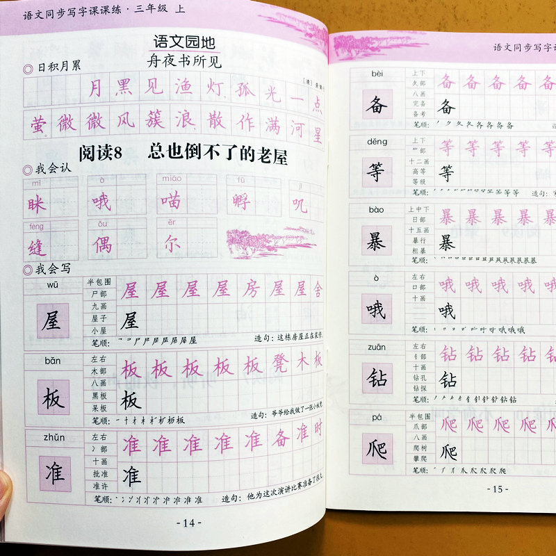 2025新人教版 三年级上册同步练字帖语文写字课课练3年级上册语文生字帖生字描红注音偏旁部首笔画笔顺组词造句子写好规范汉字墨香