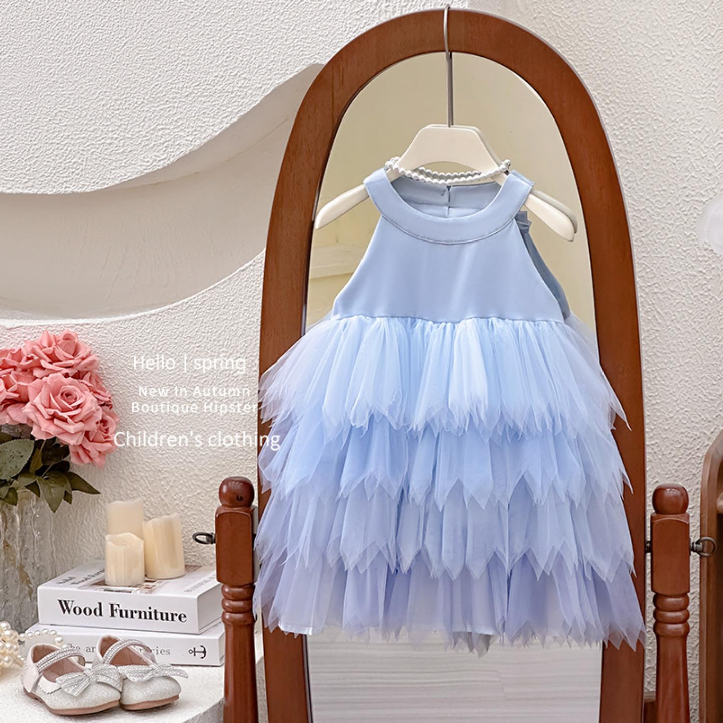 儿童演出服蓬蓬裙女童舞蹈纱裙小学生红歌比赛大合唱服装 朗诵表演