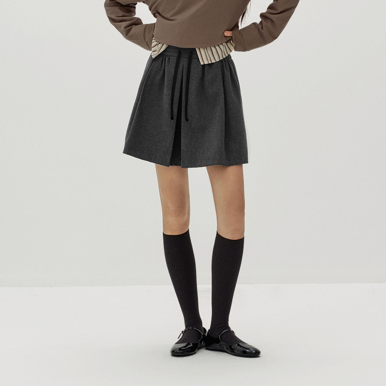 盐系学院风短裙 仿呢打褶伞裙2025新款 商场同款 森马半身裙女冬季