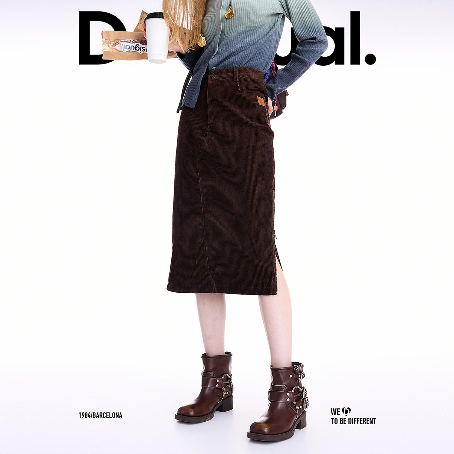 安可拉红牛仔半身裙女2025秋冬新款 复古开叉包臀裙 高腰a字中长款