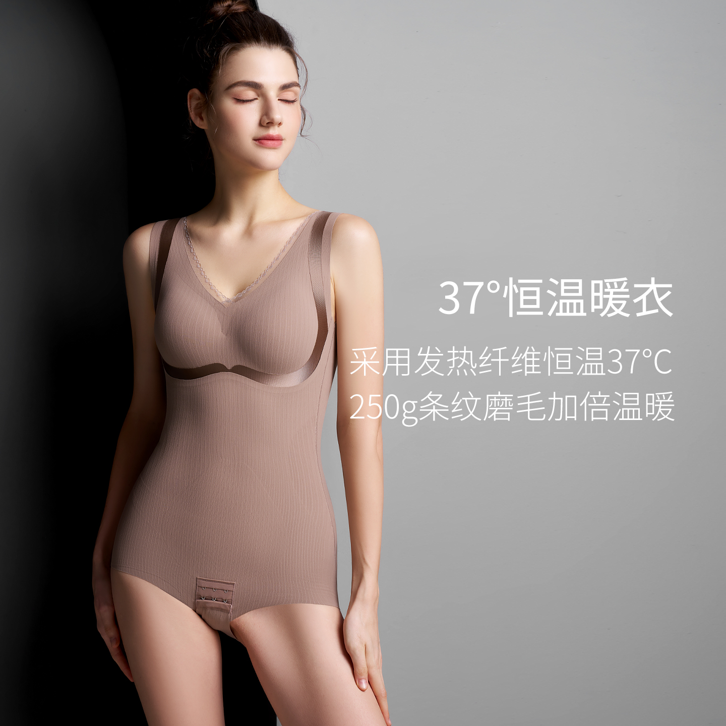 三角连体塑身衣免穿文胸加绒发热收腹束腰塑形美体无痕瘦身束身衣