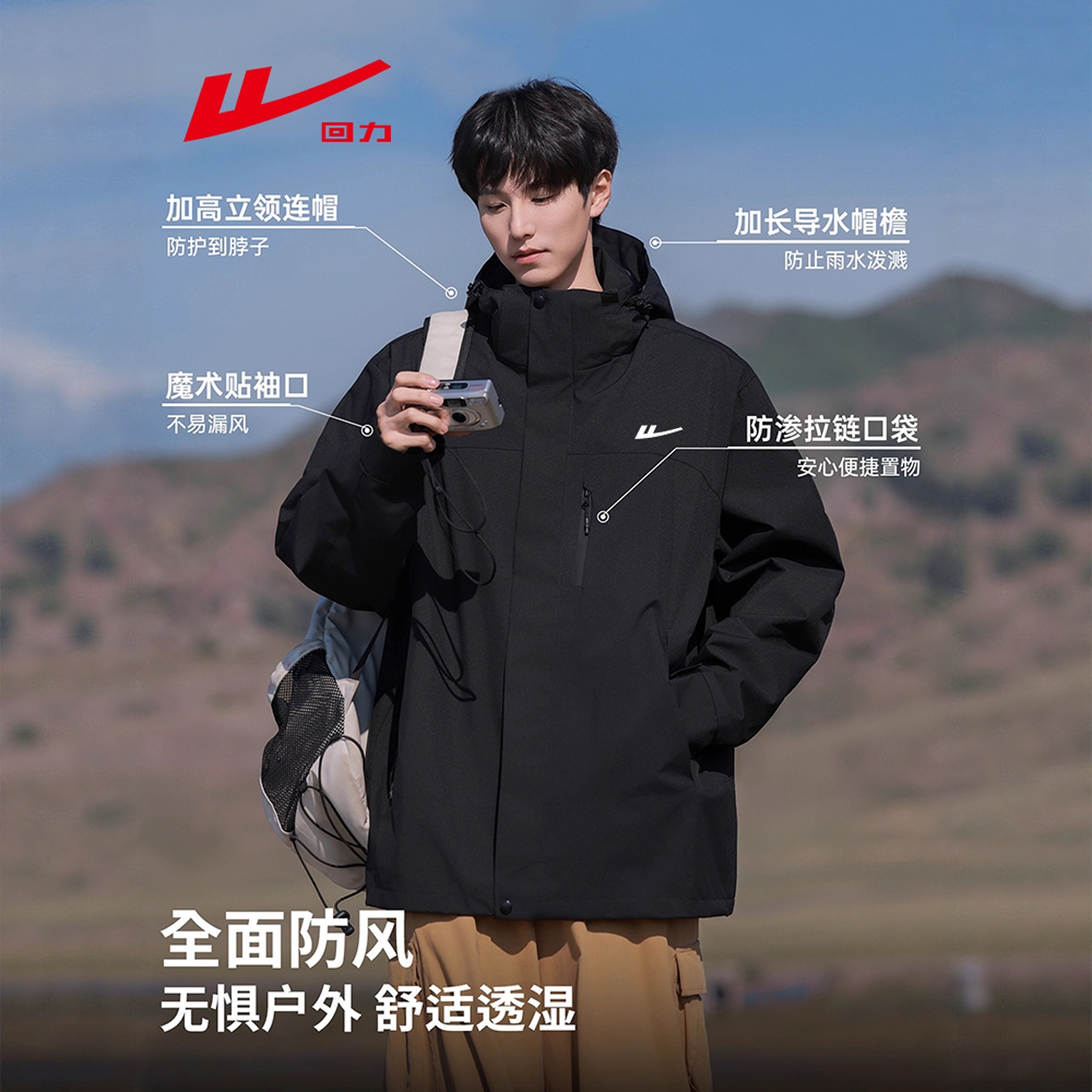 上衣外套 防风衣三合一户外防水工装 回力冲锋夹克男士 秋冬2025新款
