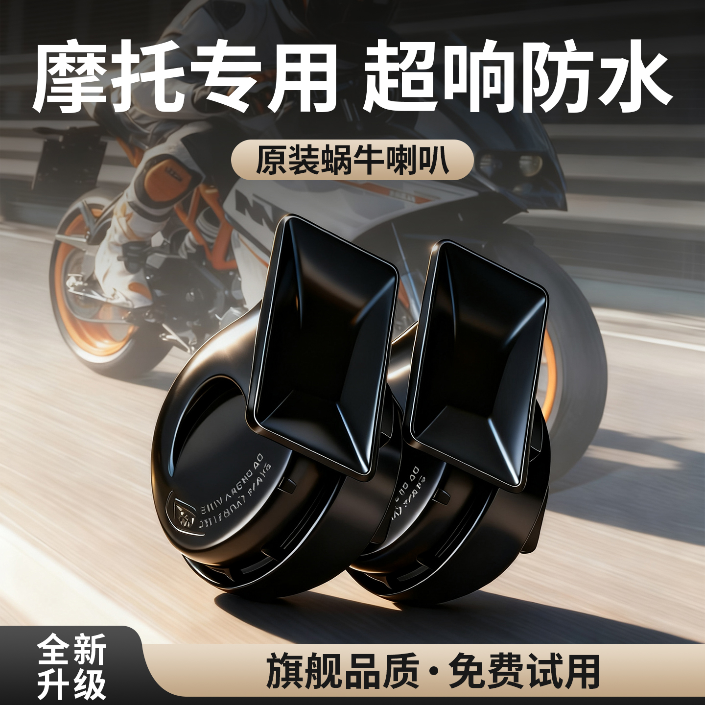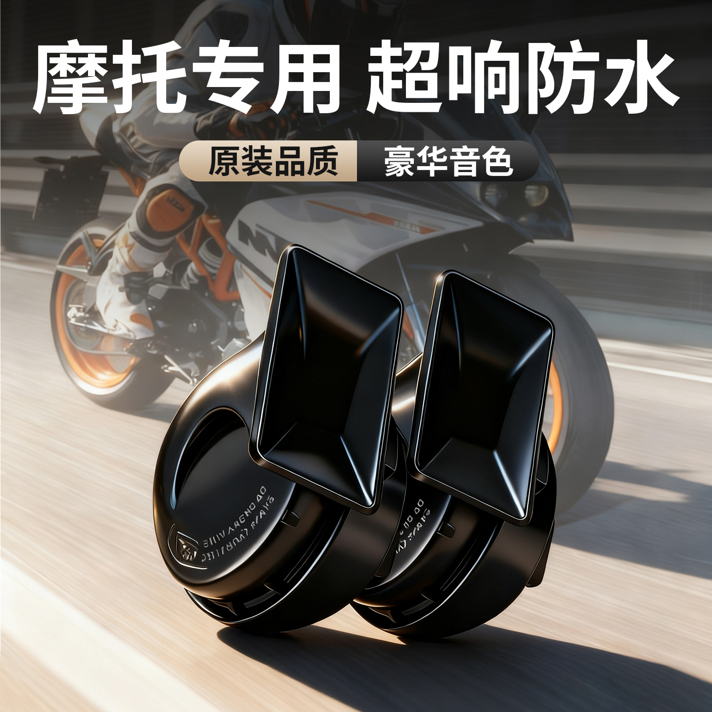 摩托车喇叭12V超响防水机车鸣笛蜗牛喇叭改装 通用单音改双音