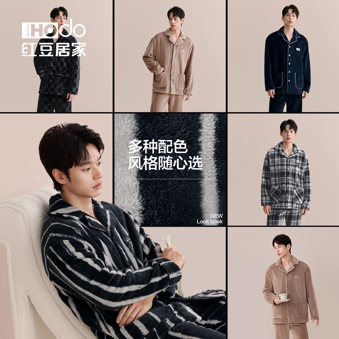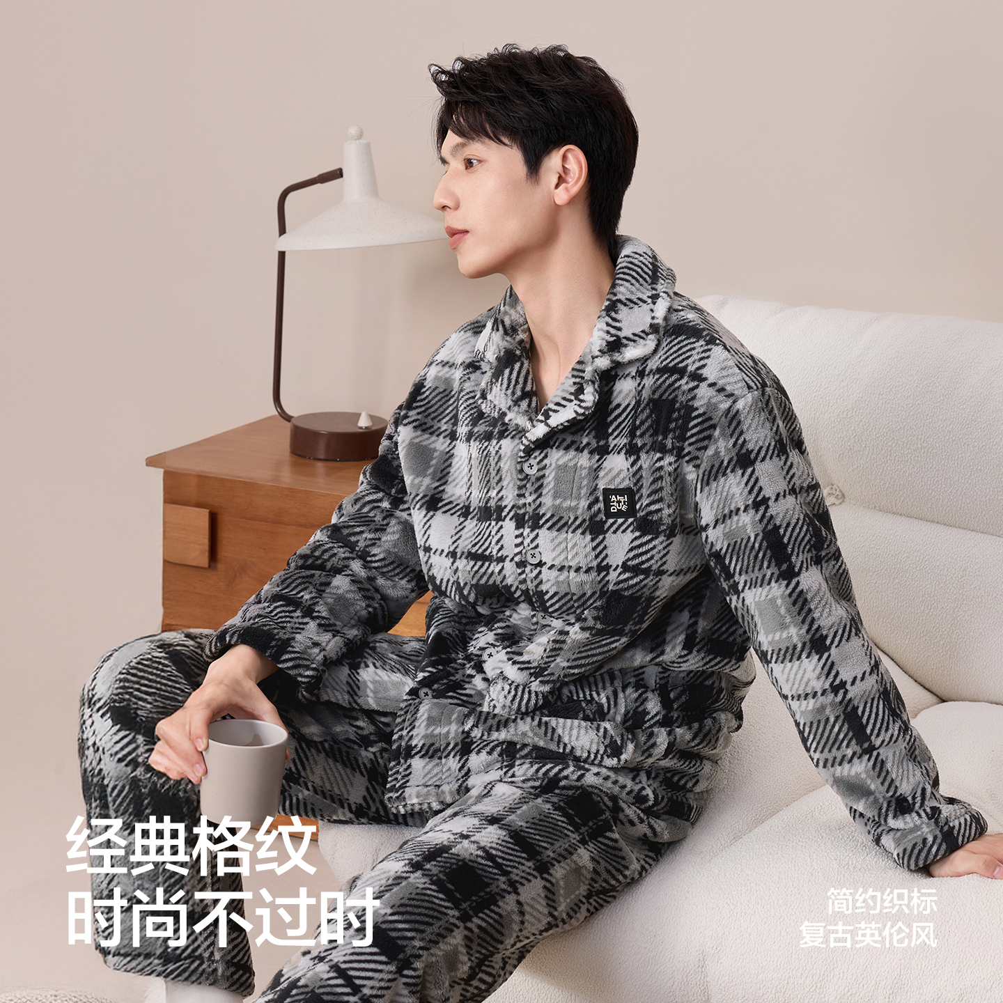 松山棉店小暖羊罗纹家居服套装 睡衣男春秋抗静电可外穿含羊毛长袖