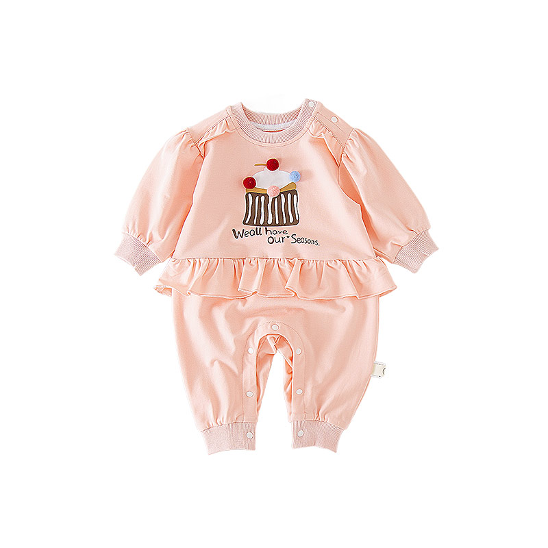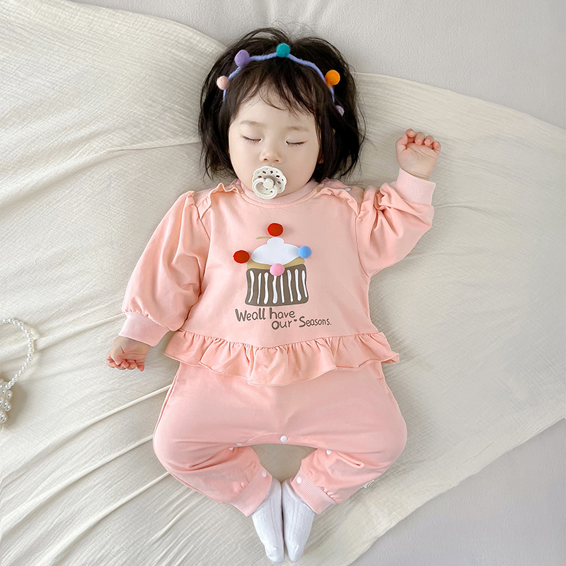kmi婴幼儿秋装 单层春秋外套满月新生儿公主爬服 连体衣女宝宝长袖