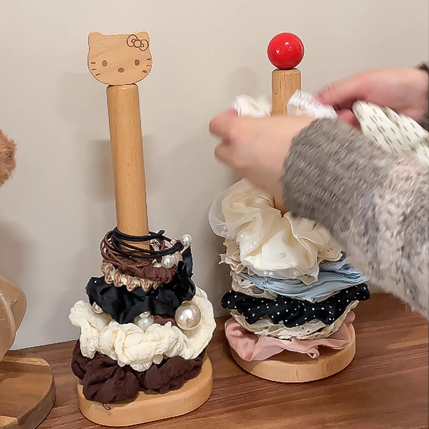实木大肠发圈收纳神器头绳皮筋发箍挂钩鲨鱼夹饰品置物架展示架子