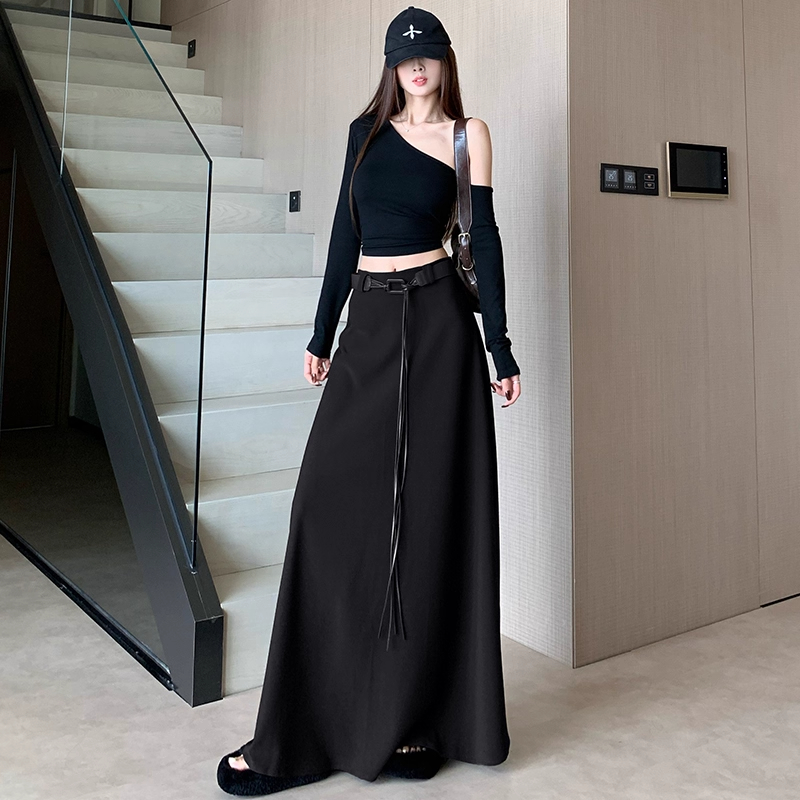a02宽松半身裙女2025新款 a字裙子通勤穿搭伞裙设计感长裙 秋季