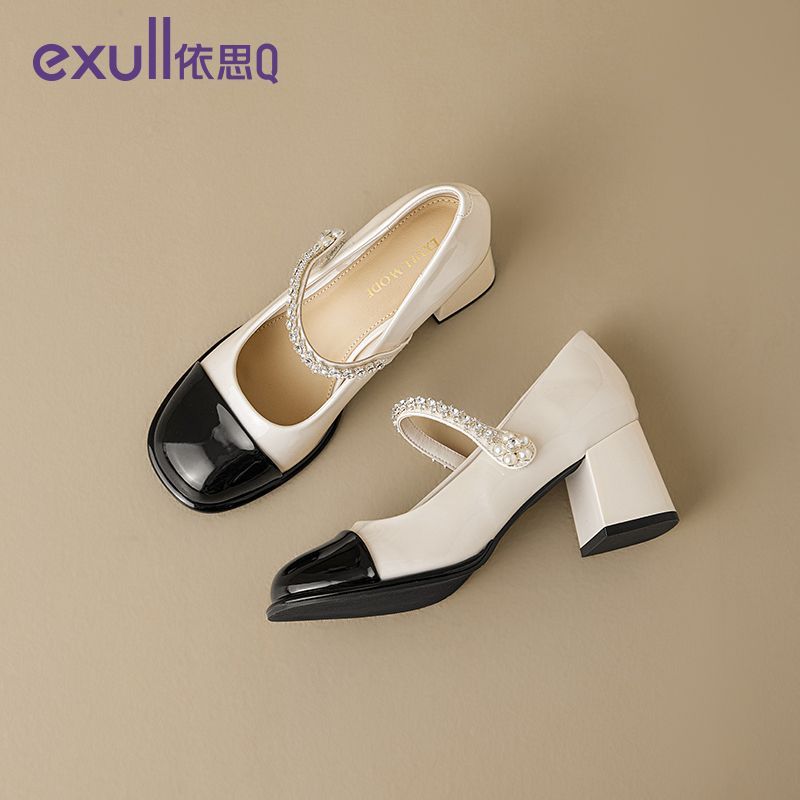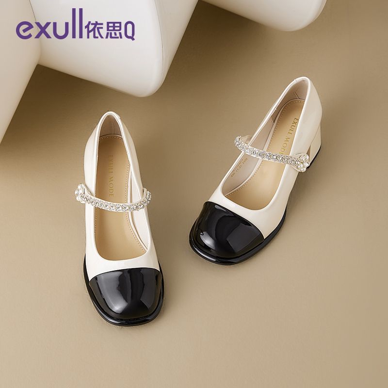 珍珠浅口通勤单鞋 依思Q2025新款 气质休闲女鞋 一字带法式 玛丽珍鞋