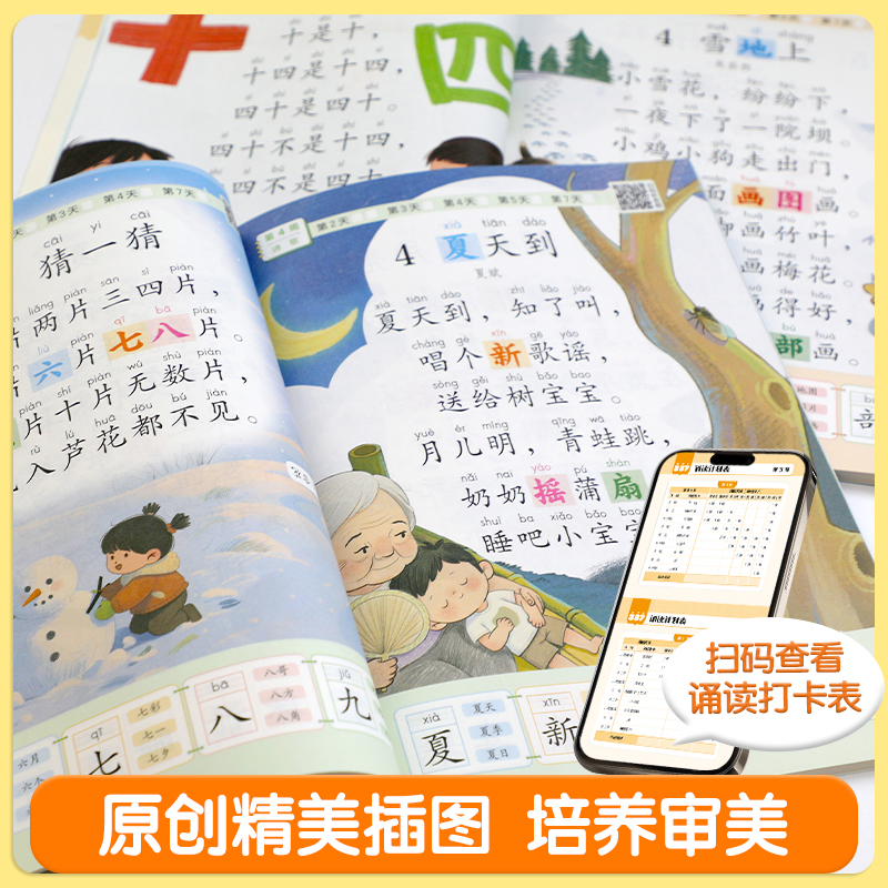 幼小衔接每日晨读诵读识千字幼儿园绘本阅读与识字宝宝早教书籍大字带拼音注音版 学前大班散文儿歌唐诗古诗词朗诵学汉字识字书正版