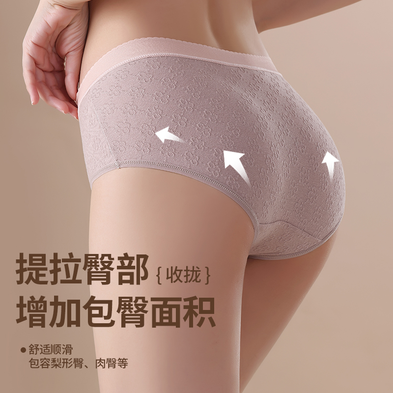 提臀女生三角裤 猫人内裤 女士纯棉高腰收腹浮雕透气全棉抗菌裆大码