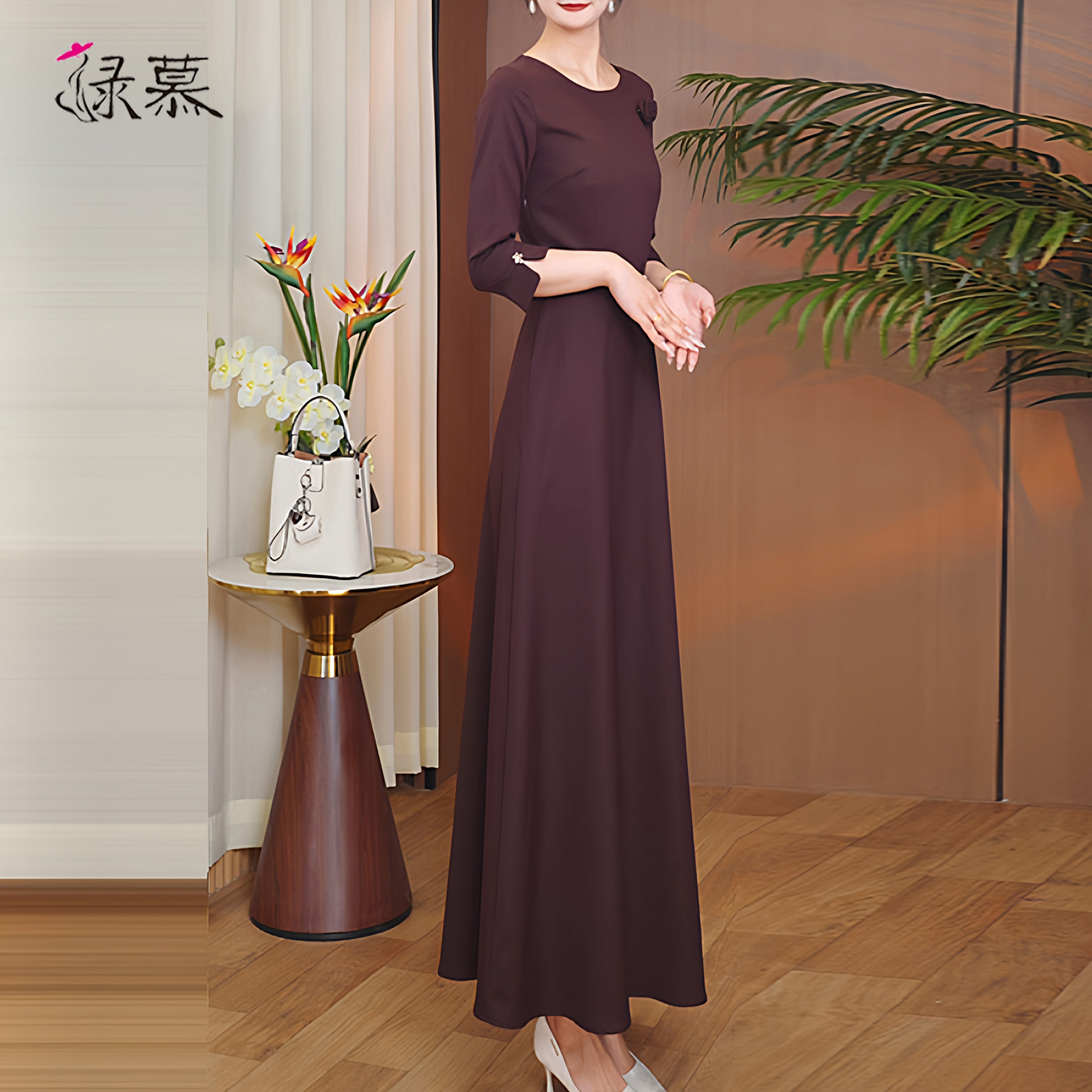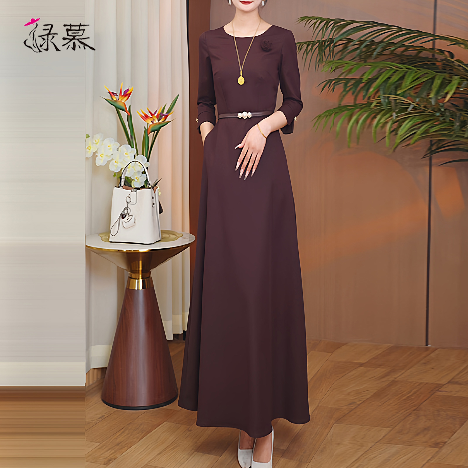 显瘦长裙子高腰圆领 轻奢高级感长款 秋季 气质穿搭连衣裙女2025新款