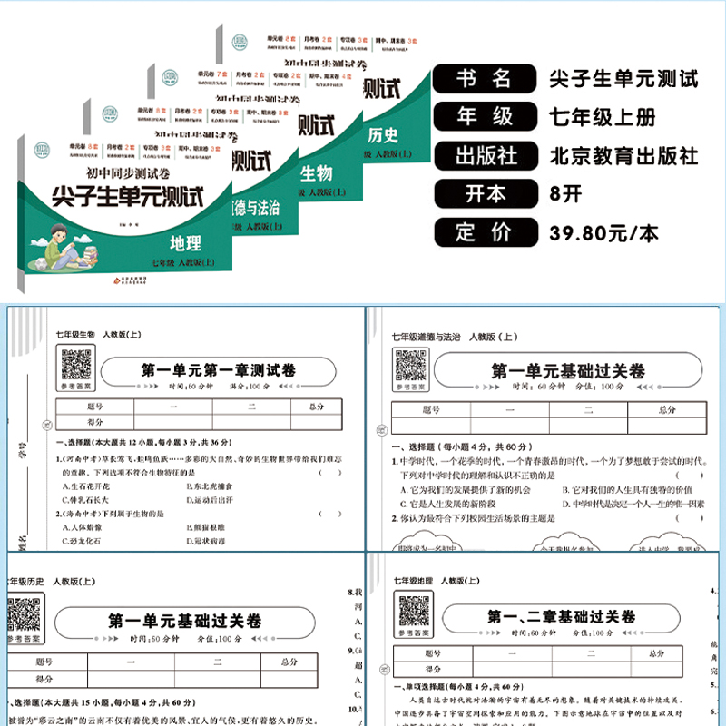 2025新版 数学小四门必刷题教辅资料同步测试卷初一二道德与法治语文英语生物地理历史期末复卷子zj 初中试卷全套七八年级上册人教版