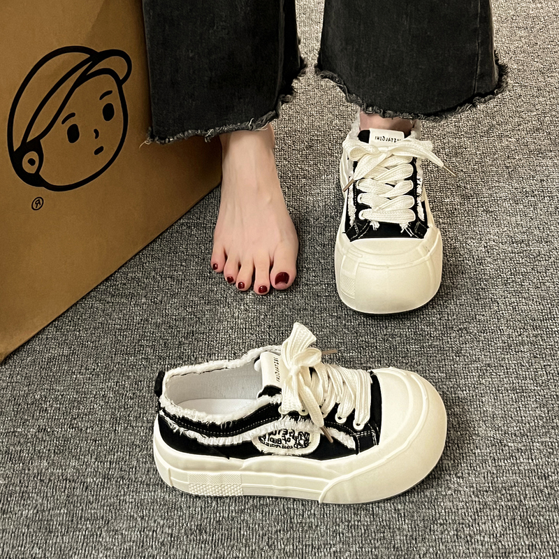 小众百搭休闲运动鞋 女春秋ins潮2025年新款 小白帆布板鞋 黑色爆款