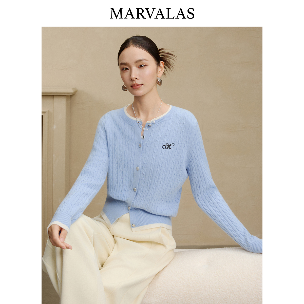 绞花肌理圆领毛衫 森柔 短款 女冬季 百搭叠穿打底上衣 森马针织开衫