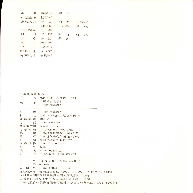 2025六三制8八年级上册地理图册义务教育教科书中国地图出版 社