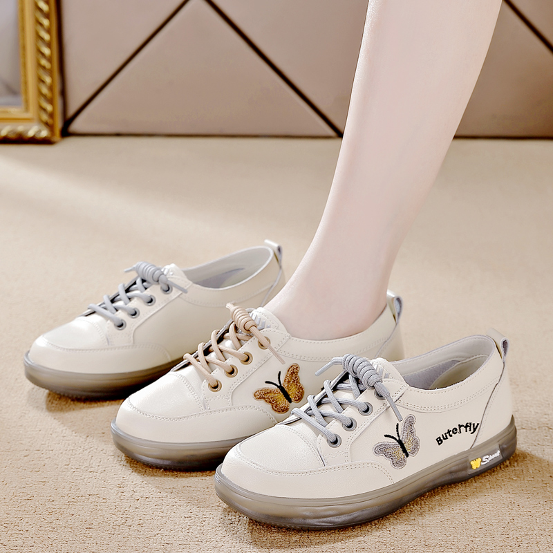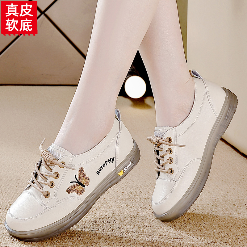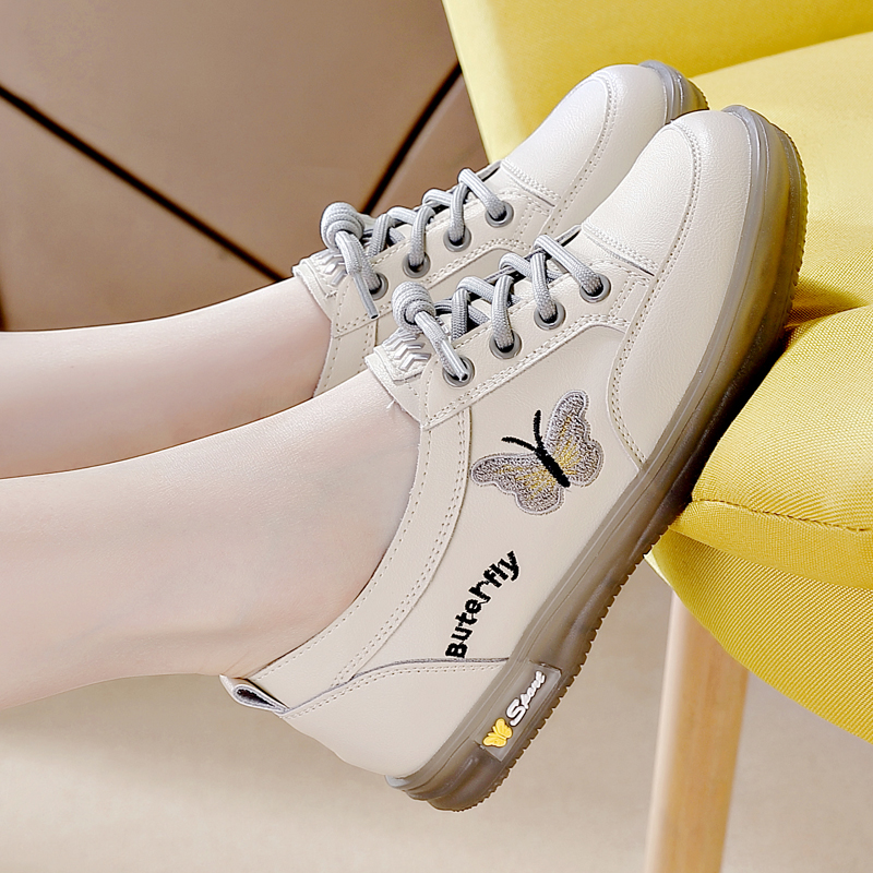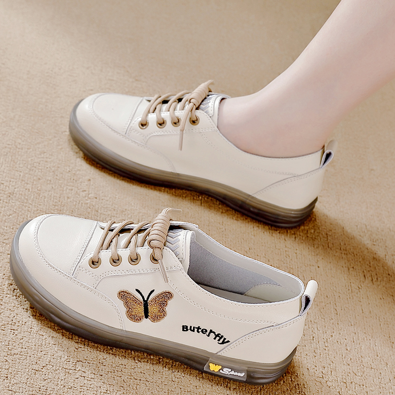 温柔风配裙子豆豆鞋 新款 女2024秋季 星期六真皮平底蝴蝶结浅口单鞋