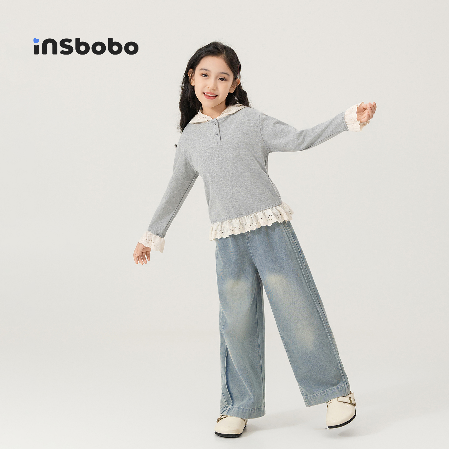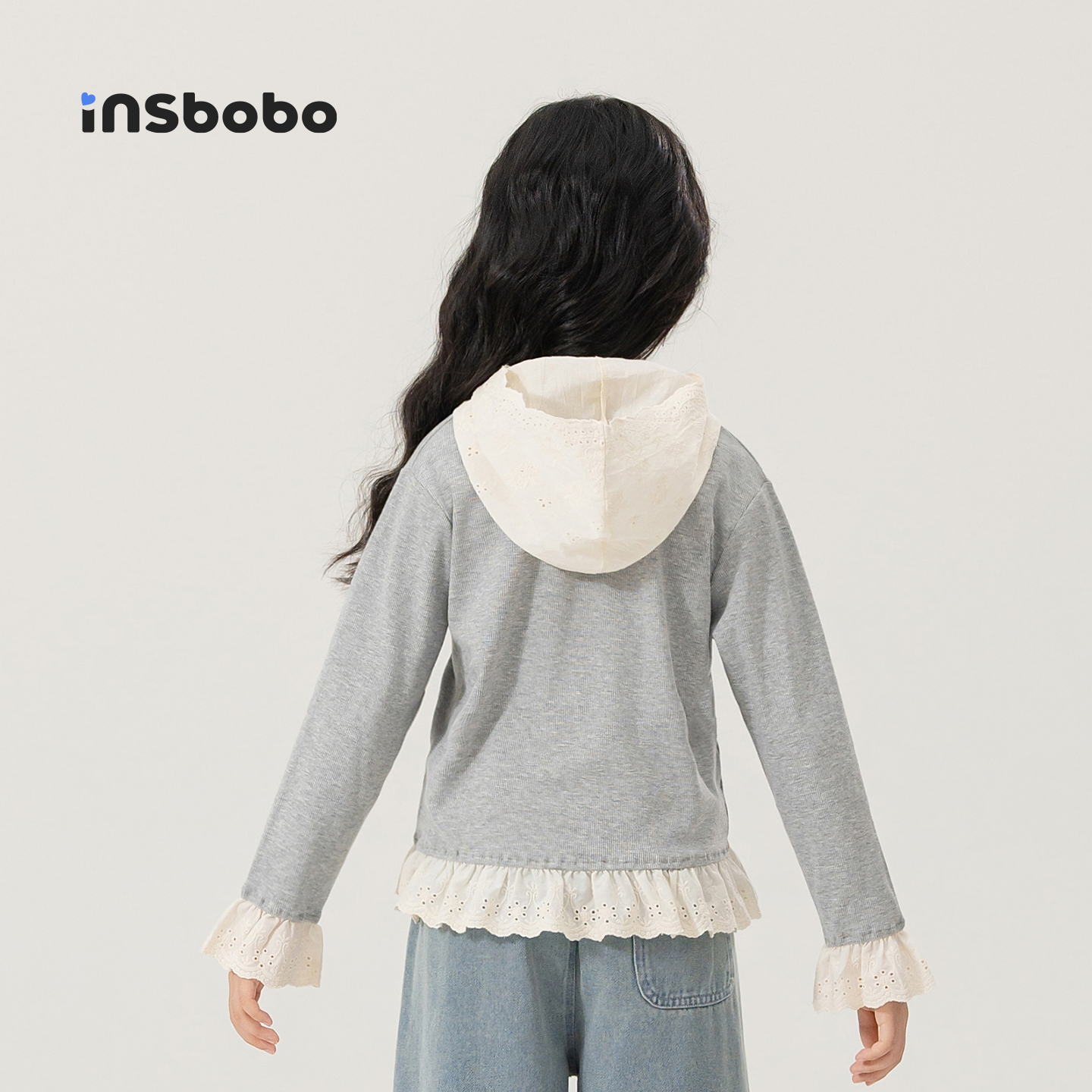 儿童连帽上衣女孩花边衣服洋气内搭春秋装 INSbobo童装 女童t恤长袖