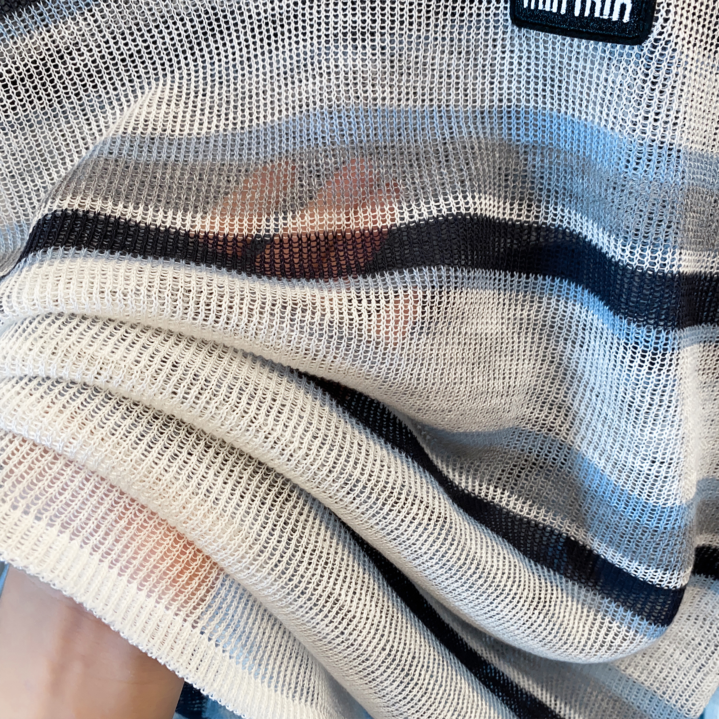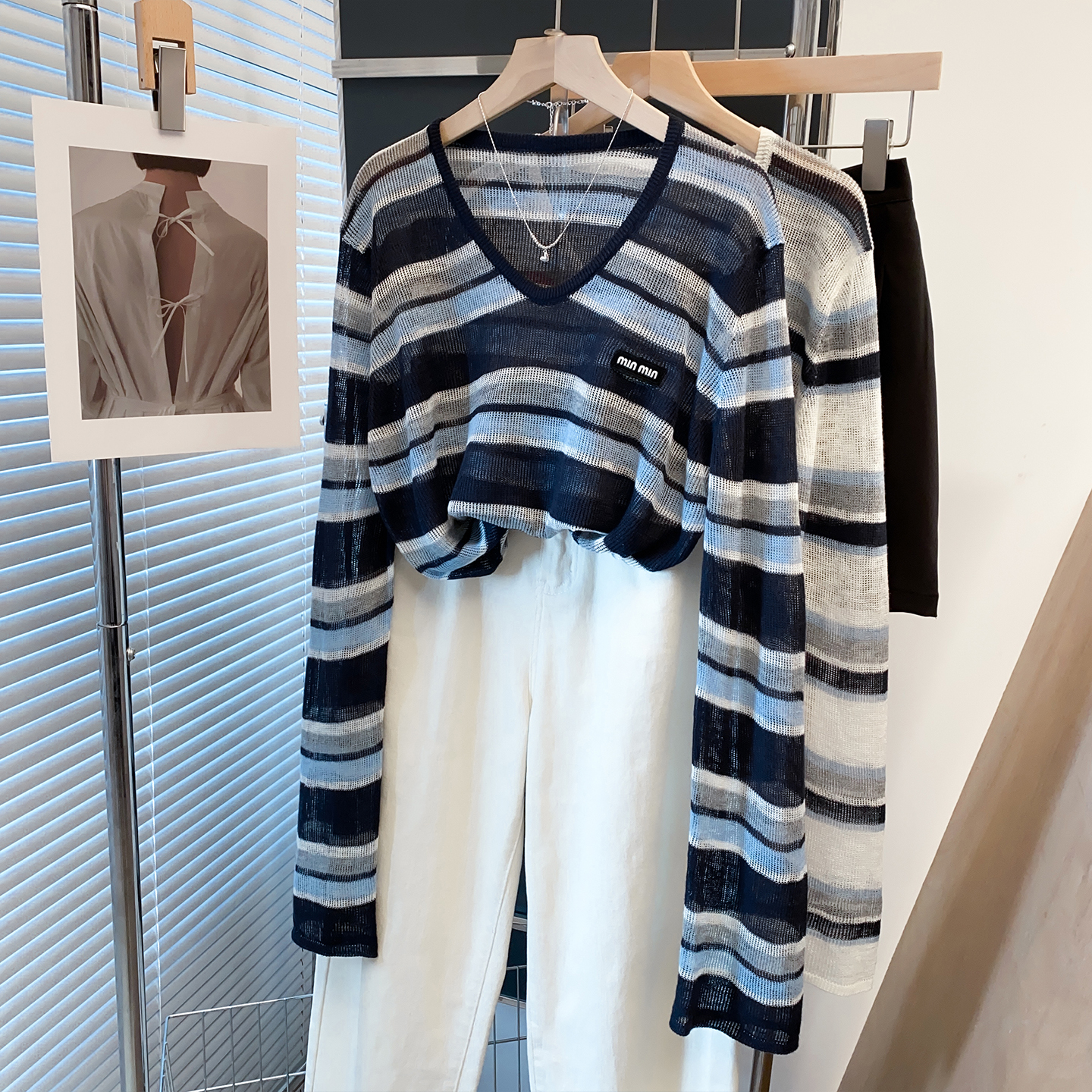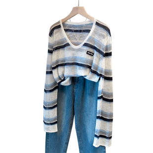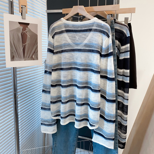 宽松慵懒风外穿上衣薄洋气罩衫 新款 女2025秋装 v领镂空条纹针织衫