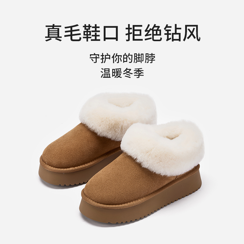 加绒保暖短靴小个子户外百搭棉鞋 热风厚底雪地靴女2025年冬季 新款