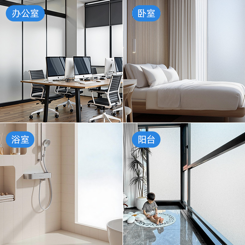 免胶磨砂玻璃贴纸透光不透明窗户带胶贴膜卫生间办公室浴室防偷窥