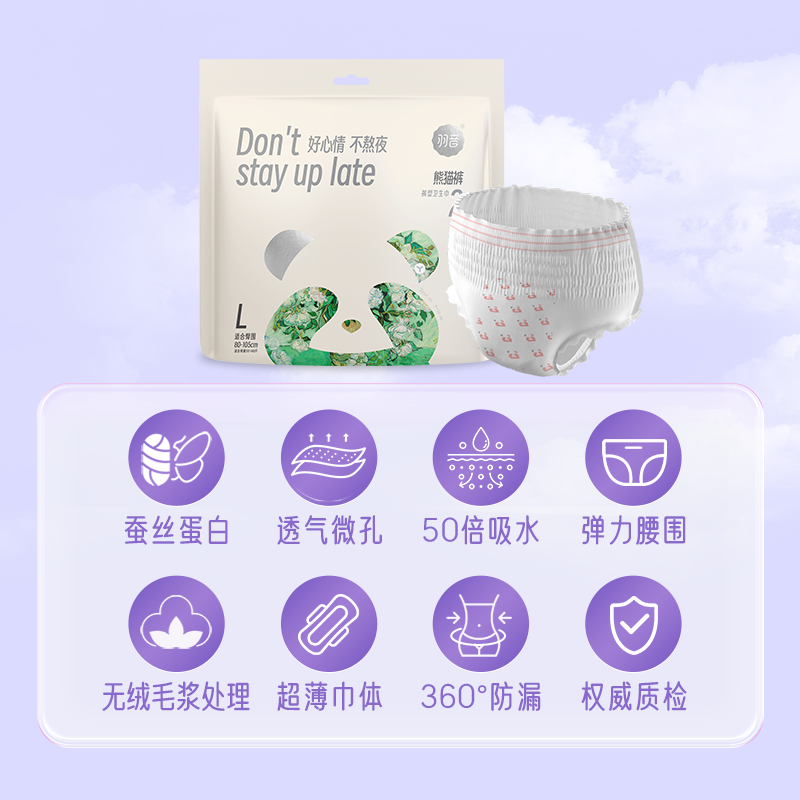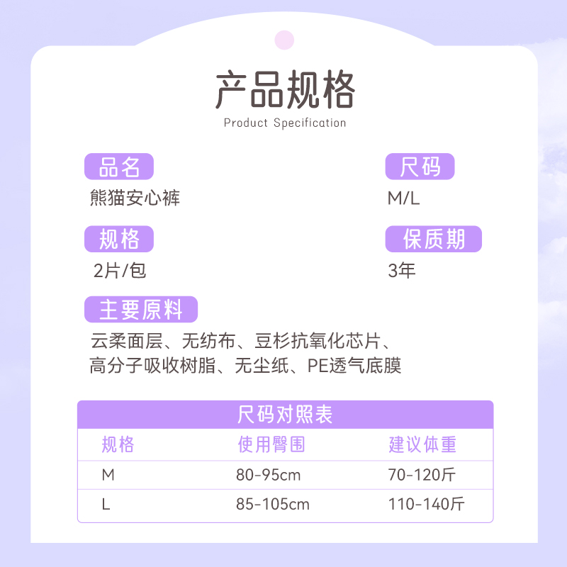 少女安心裤 经期用大姨妈夜安裤 女士 成人拉拉裤 羽音蚕丝熊猫安睡裤