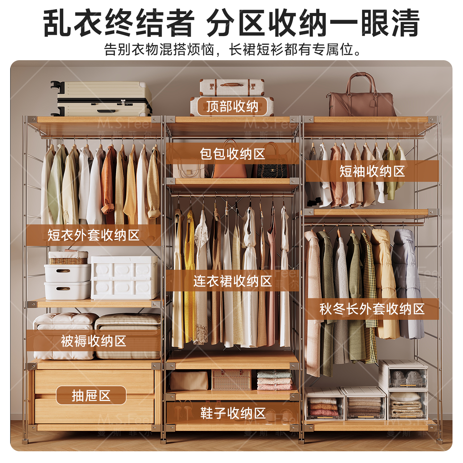挂衣架 衣帽架出租房衣帽间简易组装 小户型衣柜家用卧室开放式 日式