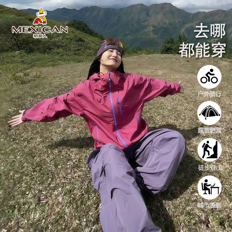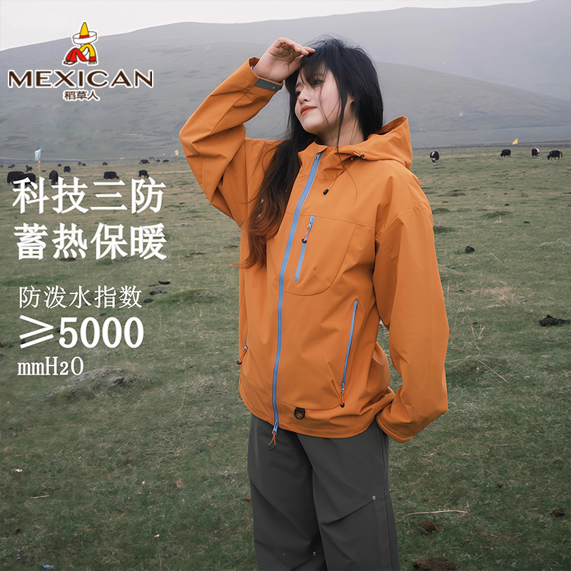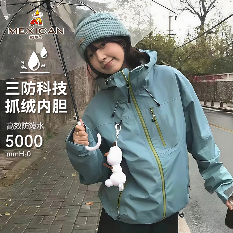 稻草人秋冬季 小个子登山服防风防水外套男 户外冲锋衣女士2025新款