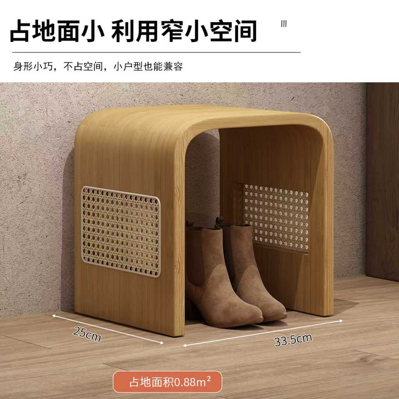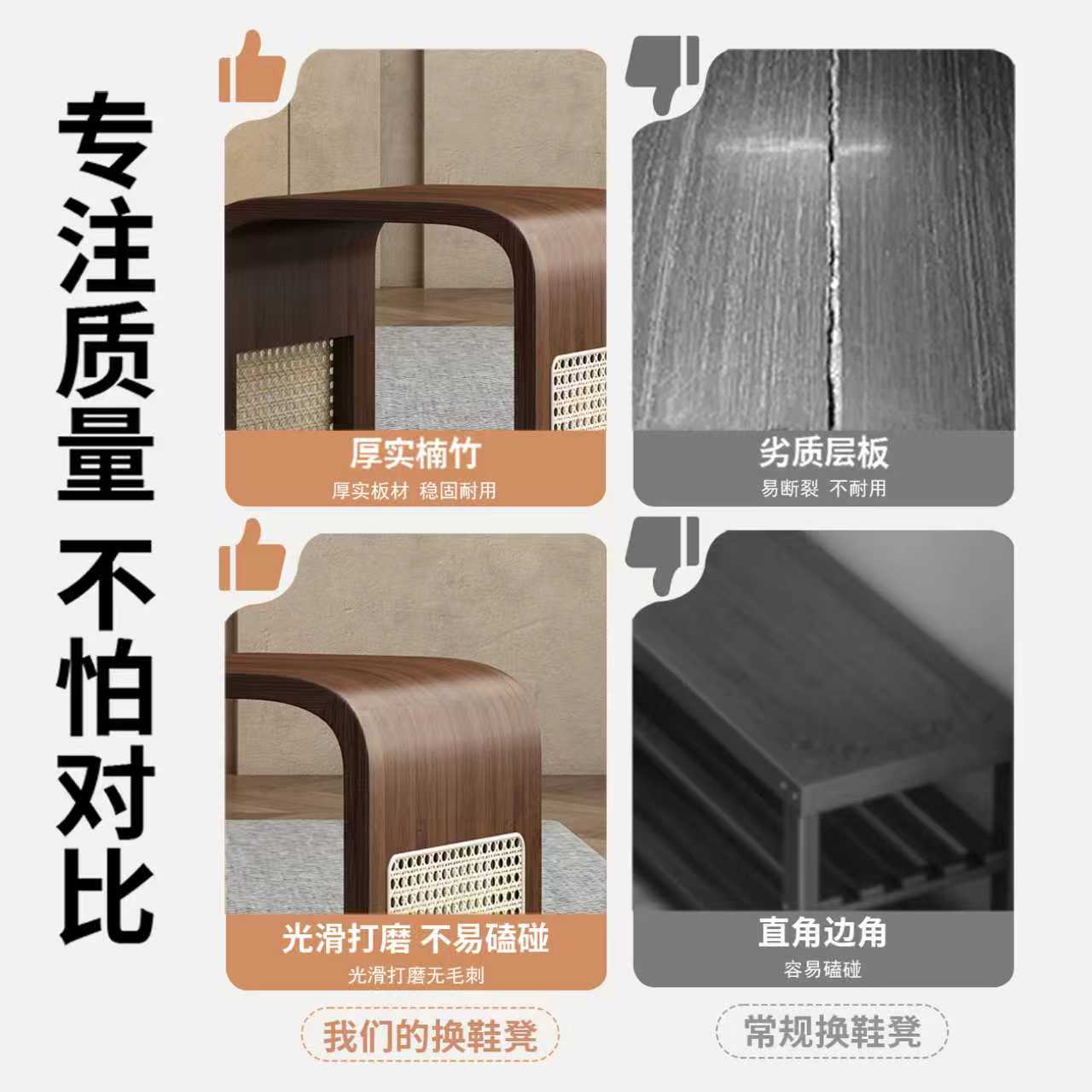 凳子入户轻奢高级感非实木坐凳新款 中古风藤编换鞋 凳门口家用穿鞋