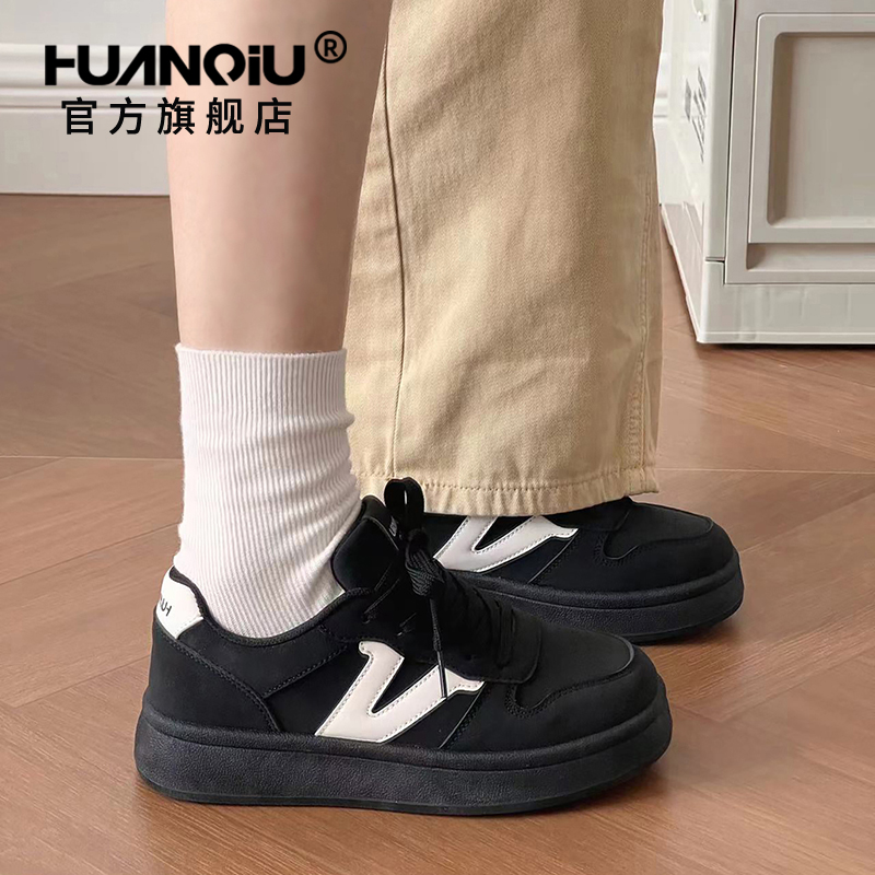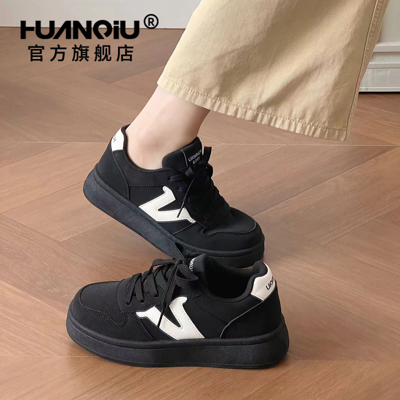 子百搭增高软底运动小黑鞋 环球黑色休闲板鞋 黑色鞋 新款 女2025秋季